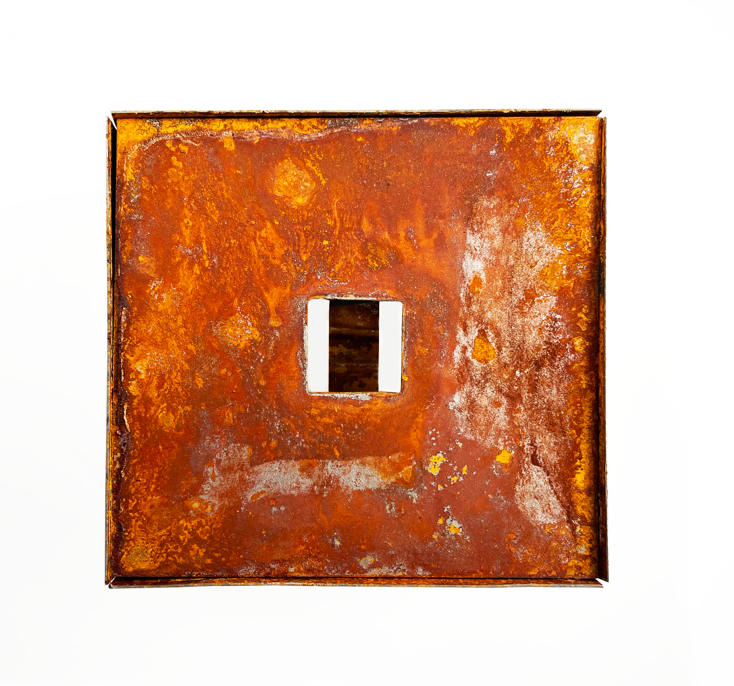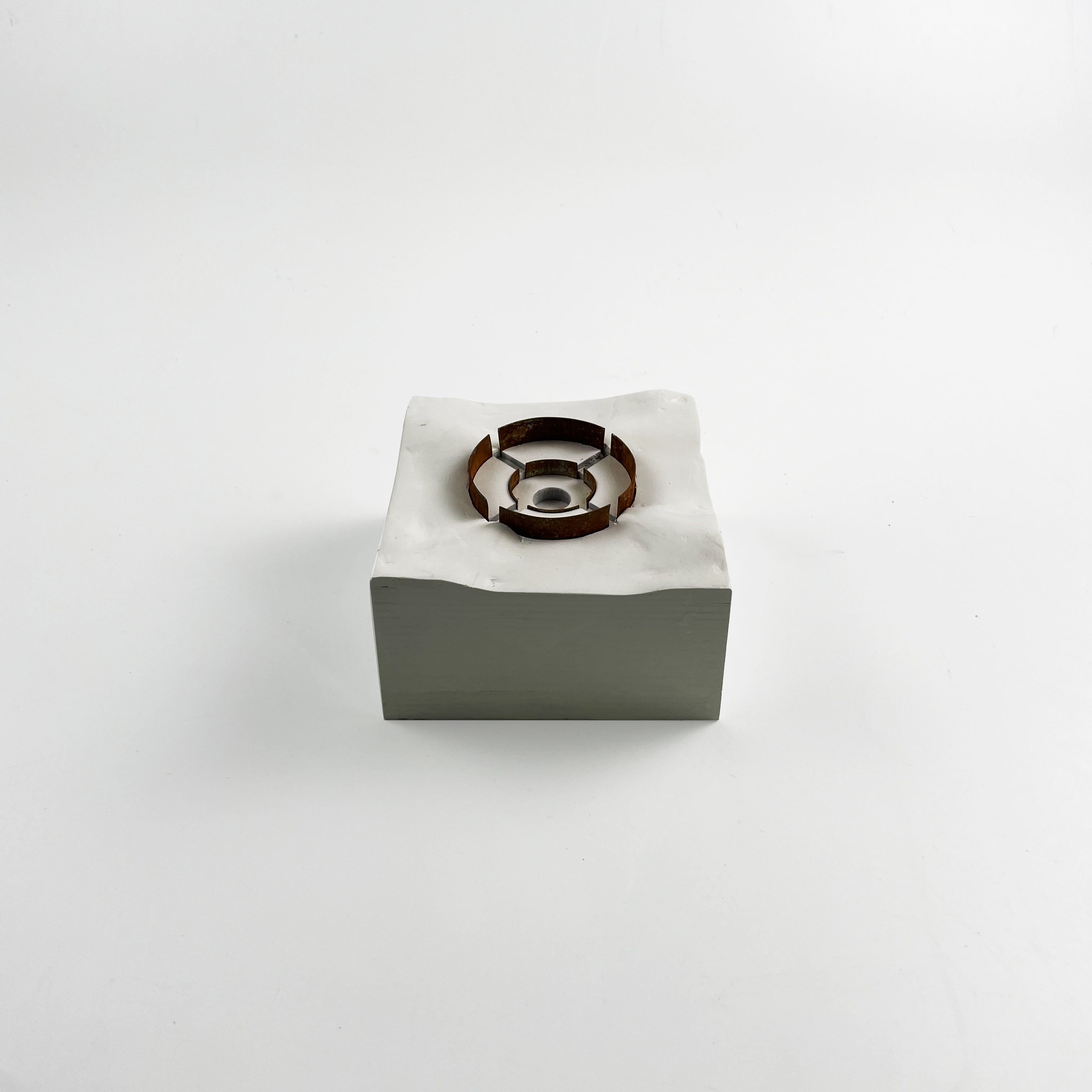 Metal elements were cut out of steel sheet metal and rods, rusted using a mix of hydrogen peroxide, vinegar and salt, and soldered together where necessary.