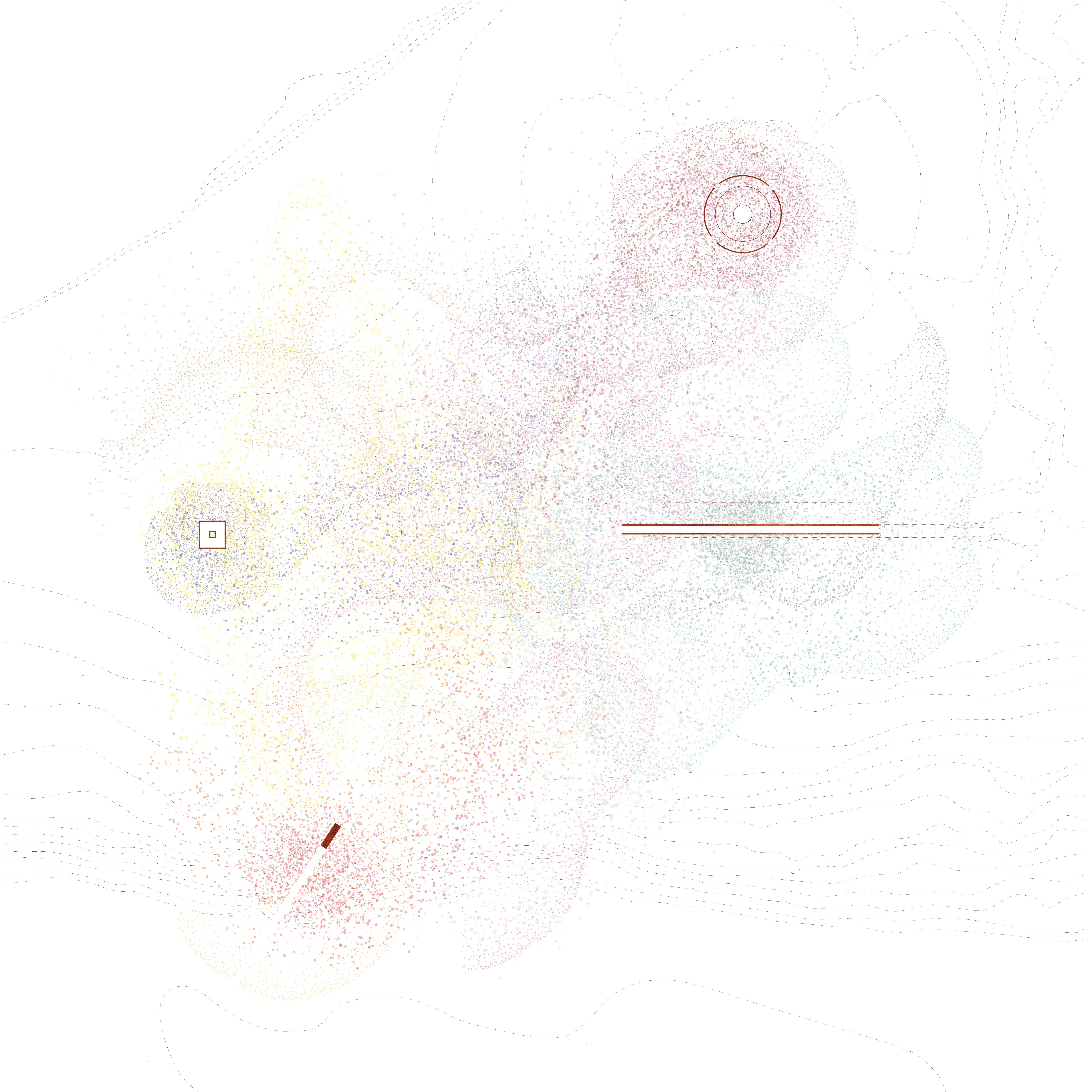 A set of ambiguous landscape elements dispersed throughout a minimally terraformed