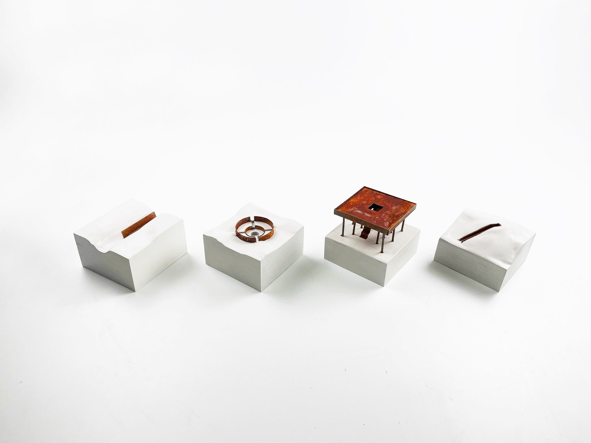 Bases were made of thin sheets of plywood, covered in plaster and spray painted white.
