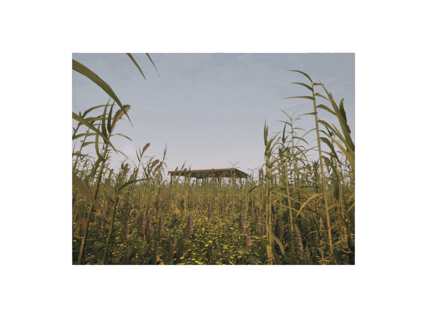meadow, planted over a contaminated brownsite on the Courtenay River, situated on the east shore of Vancouver Island. The metal structures do not actively facilitate human interaction, but their intrigue attracts those willing to traverse through the